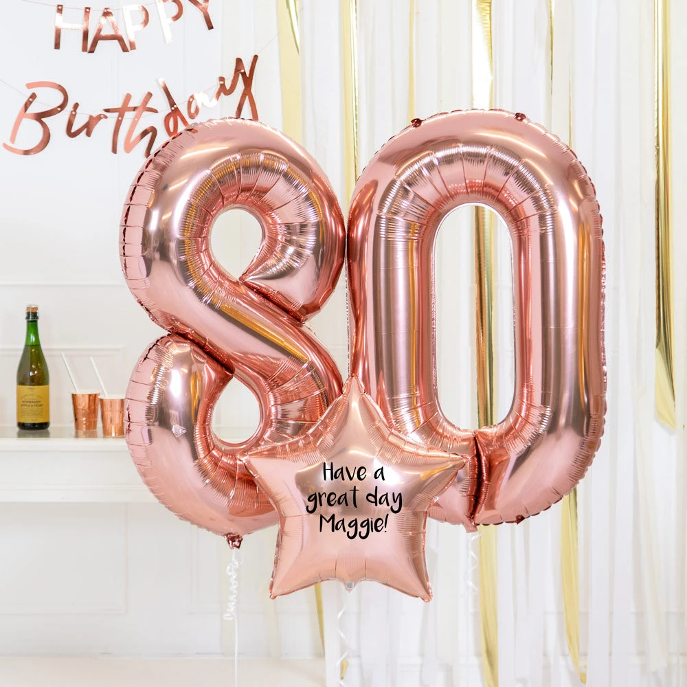 This Rose Gold 80th Birthday Balloon Bunch Will Arrive Fully Inflated Direct To Their Home!