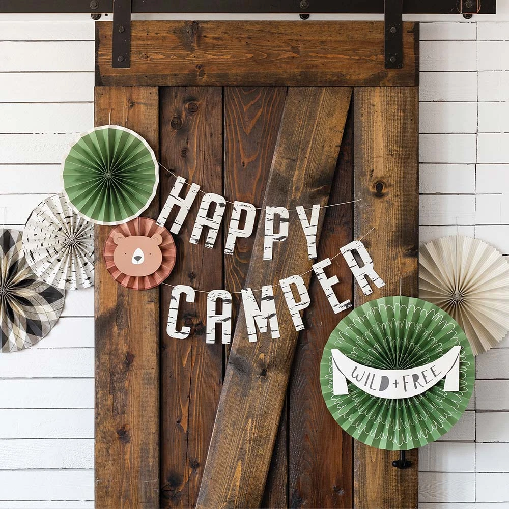 Whether you’re camping out in the garden or embracing the van life, this ‘Happy Camper’ banner will set the scene for your celebration.