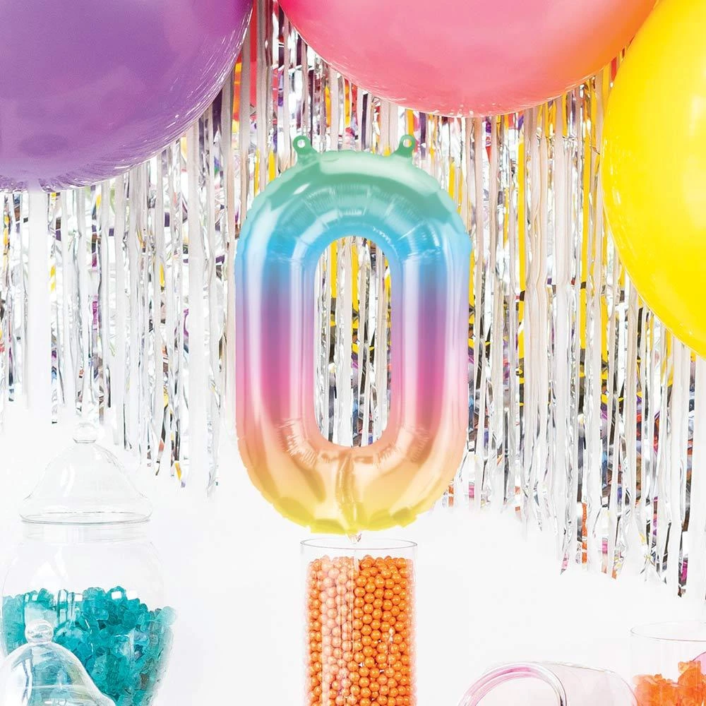 This stunning foil number 0 comes with a fancy rainbow ombre effect that looks amazing when mixed in with other rainbow party features! Each balloon is easy to inflate using the included straw or a handy balloon pump.Â