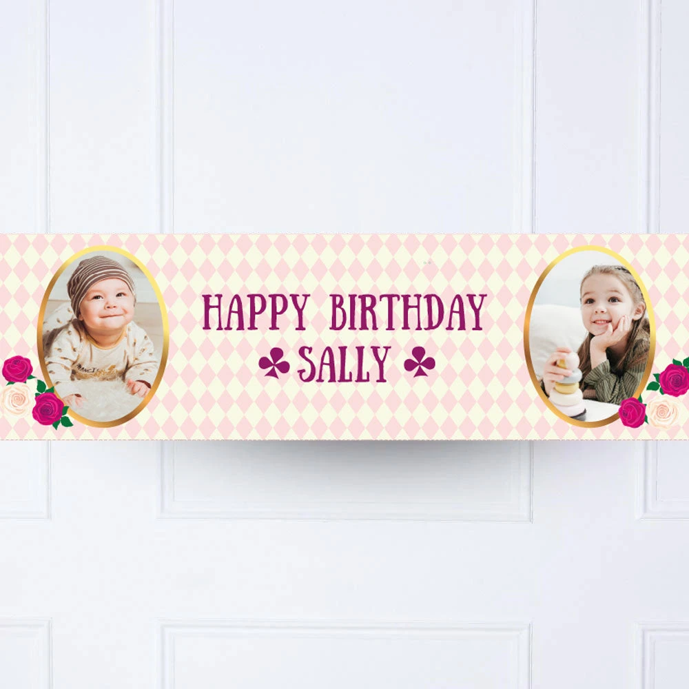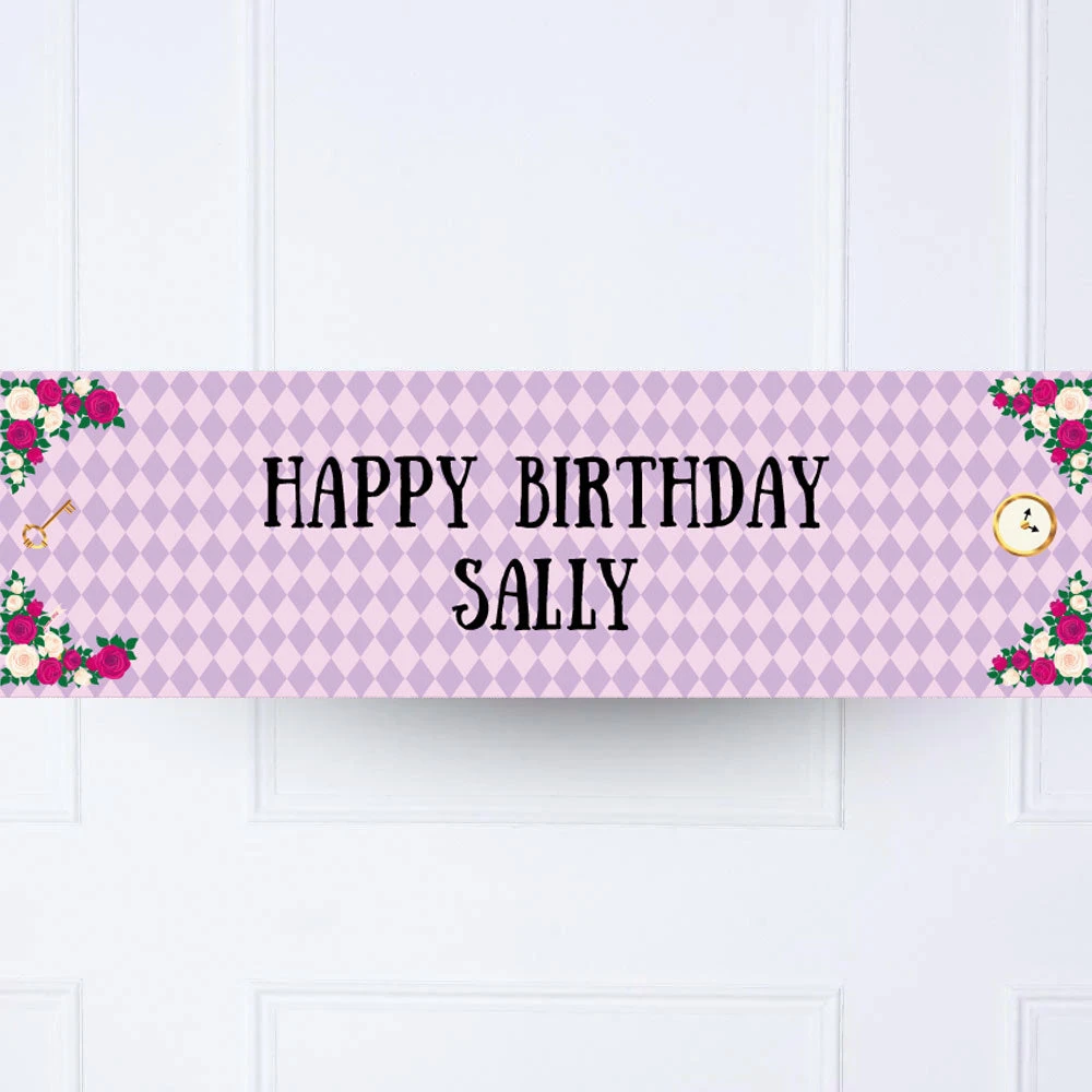 Featuring roses on a pastel pattered background, this wonderland themed banner will be the best decoration at your celebration whilst bringing attention to the special occasion.