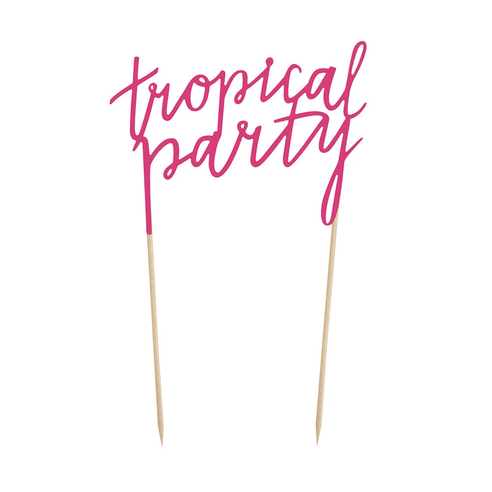 Featuring ‘tropical party’ in a beautiful bright pink shade, this cake topper is ideal for decorating cakes or other party food for summer celebrations. It adds the perfect finishing touch that guests will adore.Â