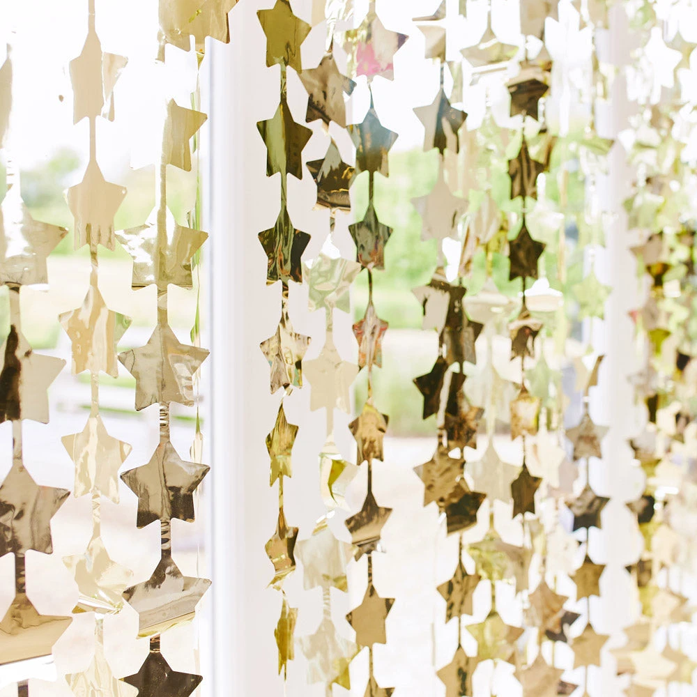 This luxury foil curtain features mini gold stars in a vertical repeat pattern and is ideal for decorating doorways or any plain background for any party or special occasion. It has been exclusively designed by Party Pieces and can even be re-used after your party to add some permanent shimmer to your home décor. Simply use the included peel able self-adhesive strip to hang this lovely backdrop up amongst more party decorations and tableware from our Shooting Star, Unicorn and other Party Pieces collections!