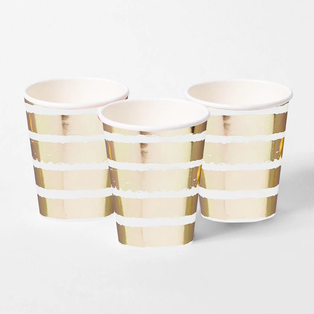 These Fabulously Stylish Party Cups Come with a White and Gold-Striped Finish!