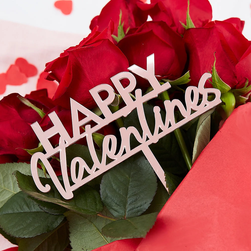 This Happy Valentines bouquet decoration features a rose gold design and is ideal for adding the wow factor to a lovely bunch of roses.Â
