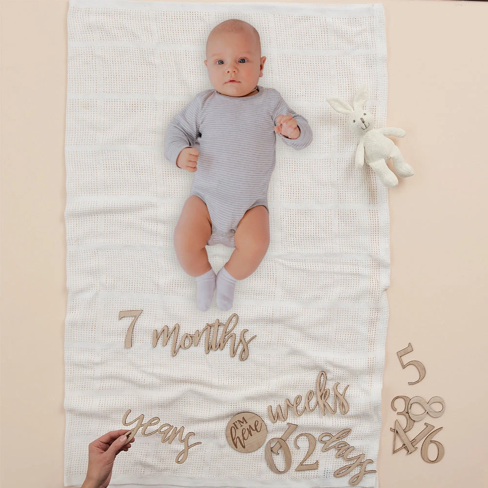 This milestone mix and match kit makes the ultimate gift for mum-to-be that she will absolutely love. It contains numbers 0-9, and a days, weeks and months sign that can be used to capture memorable photos with your bump throughout your pregnancy journey as well as with the adorable new arrival to treasure their milestone moments. Perfect for looking back on for years to come!