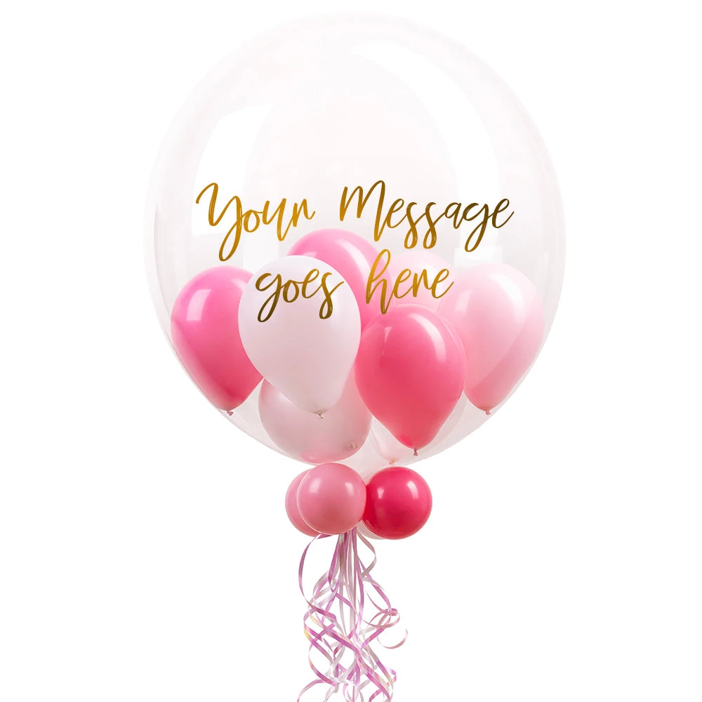 A lovely personalised gift that will deliver a smile direct to their door. This fantastic 24-inch balloon will float out of the box on arrival, and is filled with mini balloons in a combination of rose, pink, white and diamond clear colours. You can then customise with a message of your choice using our easy online editor.