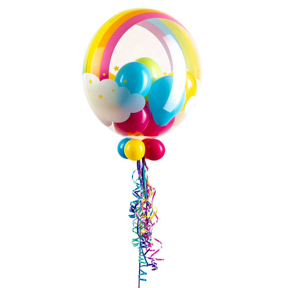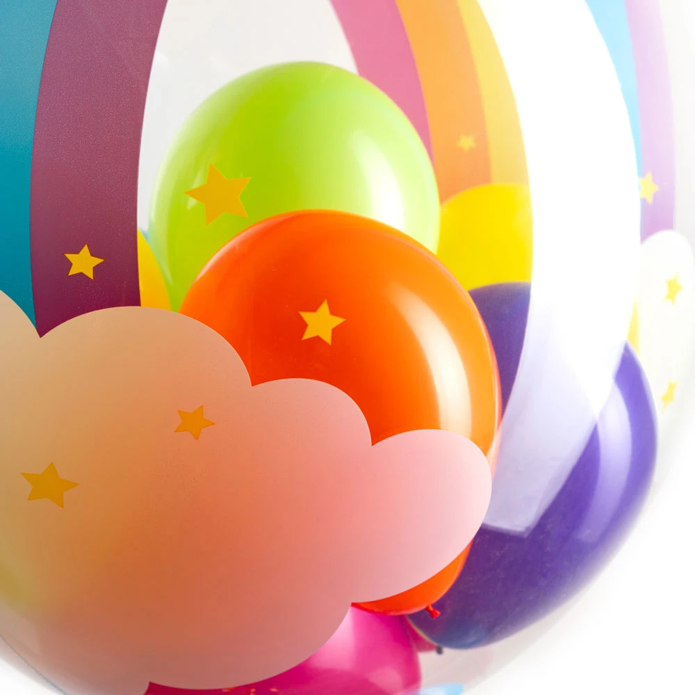 This colourful balloon arrives inflated and is a great way to deliver a smile to the lucky celebrant. A wonderful gift idea for birthdays, baby showers or simply to tell someone you miss them. This gorgeous 24-inch balloon comes with a rainbow with clouds design printed onto it and is filled with mini balloons in a combination of beautiful bright colours. Customise with a message of your choice using our easy online editor.