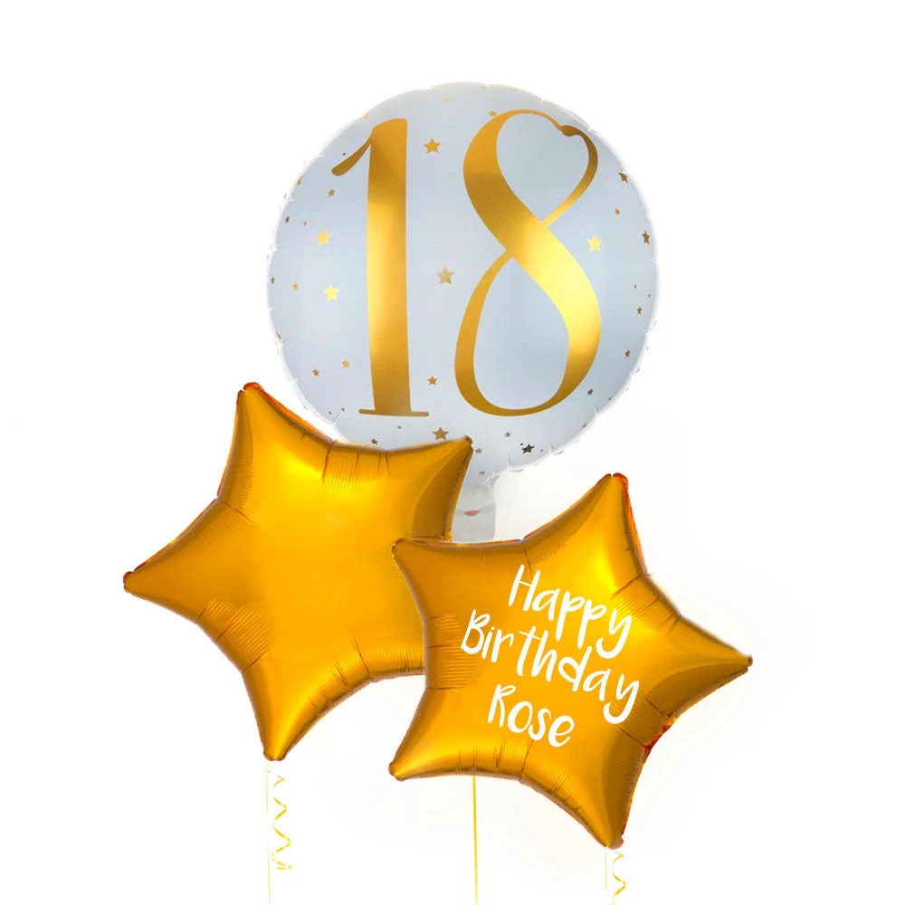 Add to the birthday celebrations with this glimmering gold 18th balloon bunch!