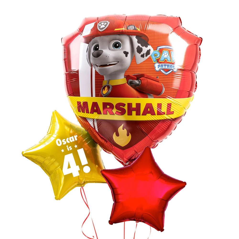 This reversible balloon trio features Paw Patrol favourites, Chase and Marshall along with two coloured foil stars! They’ll arrive fully inflated in a box, so you can easily place them next to a celebration table, on the floor or anywhere that needs a little party decoration magic!