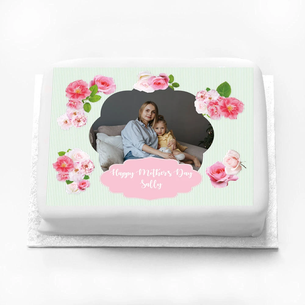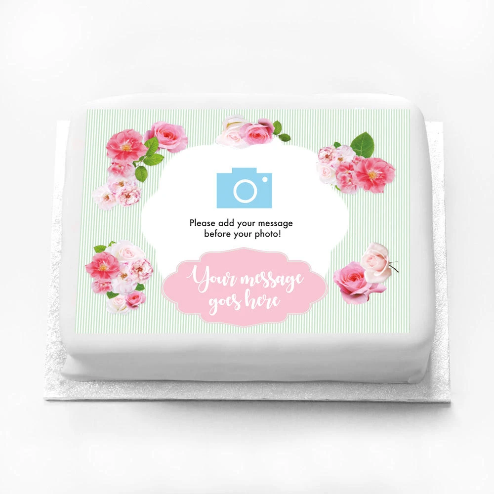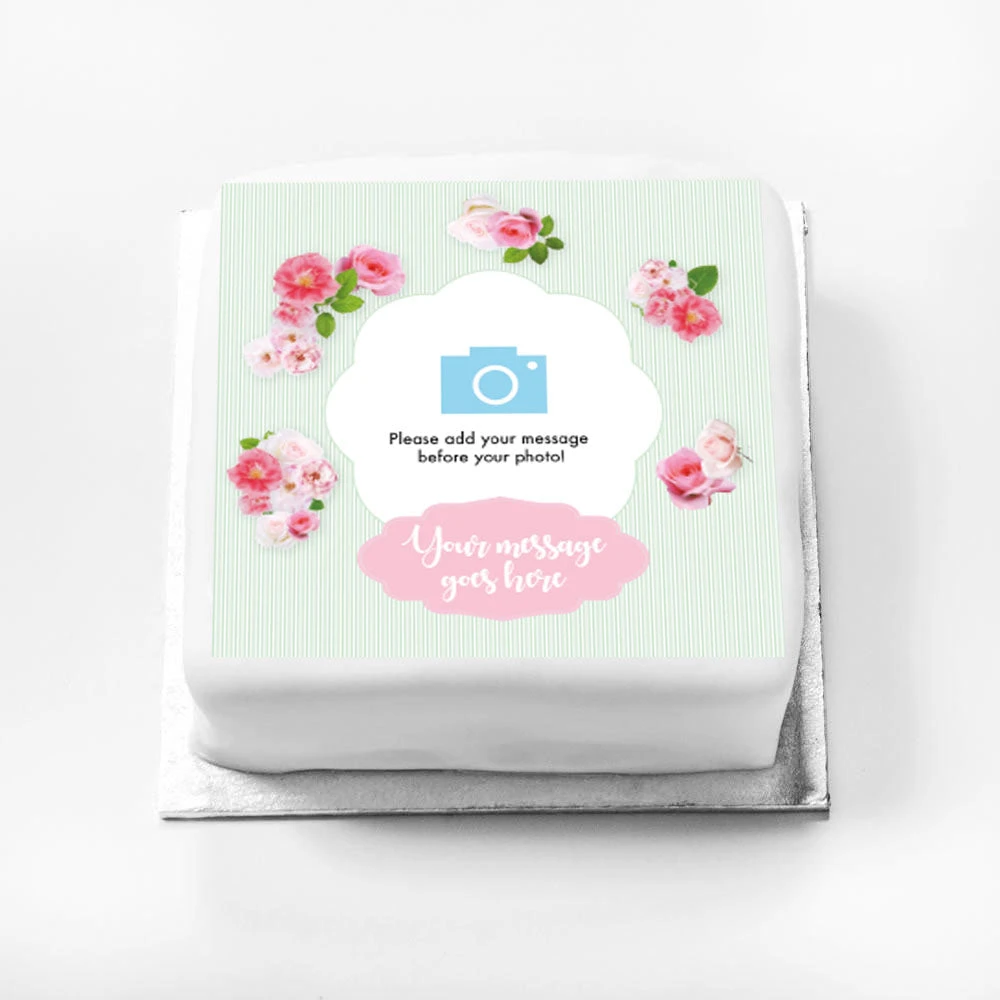 A lovely way to surprise them on Valentine’s and other special days, our customisable cake lets you add your own image and message. Simply use our editor to place your photo inside the design’s elegant rose frame.Â