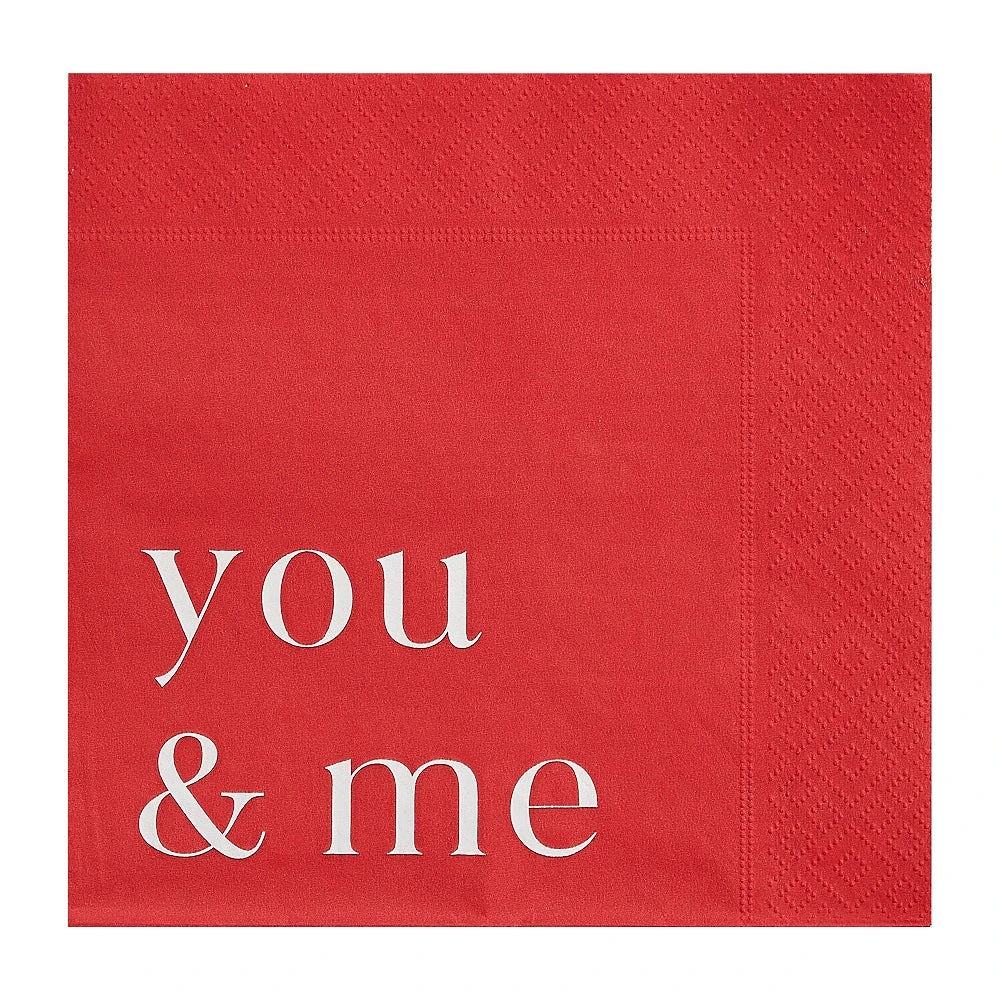 Whether itβs a romantic home-cooked meal for two or a party for your loved ones, these red napkins with you and me white text will complete your tableware for the evening.