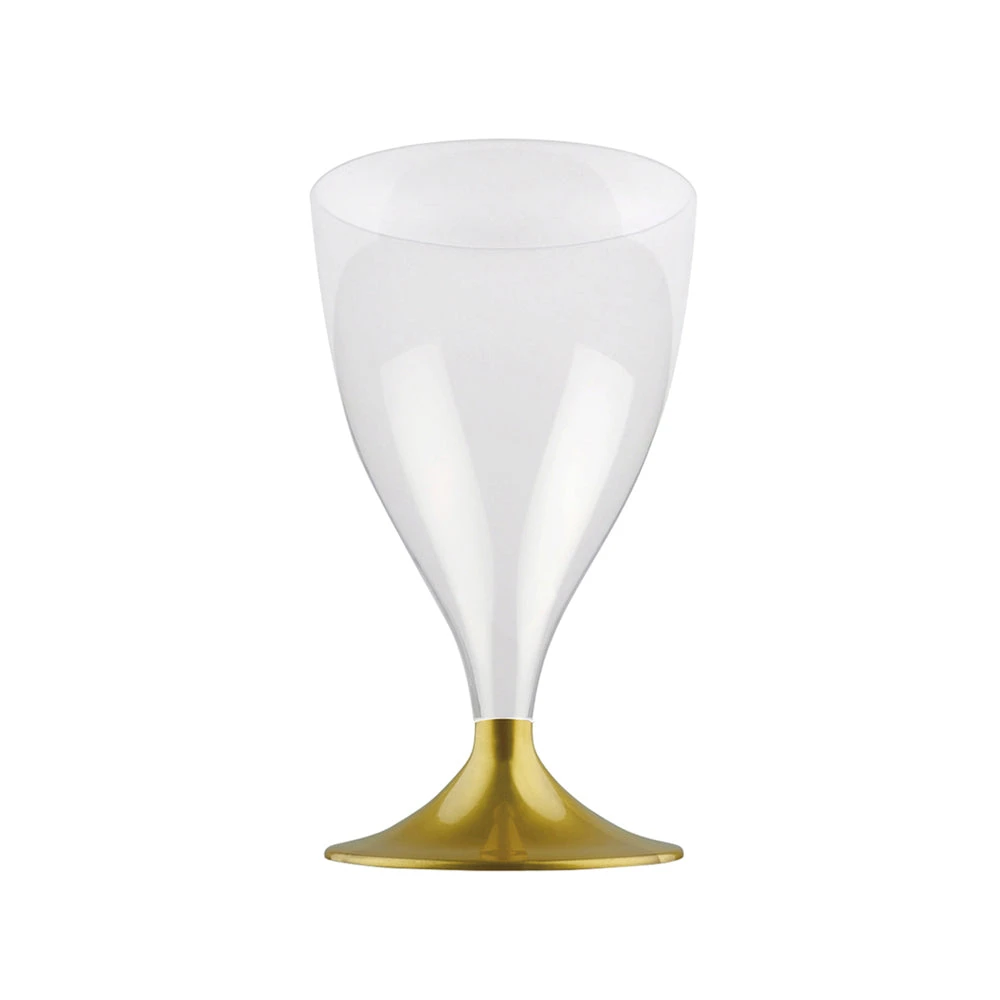 These wonderful reusable wine glasses have an easy to attach gold base and will add a classy touch to any event.Â