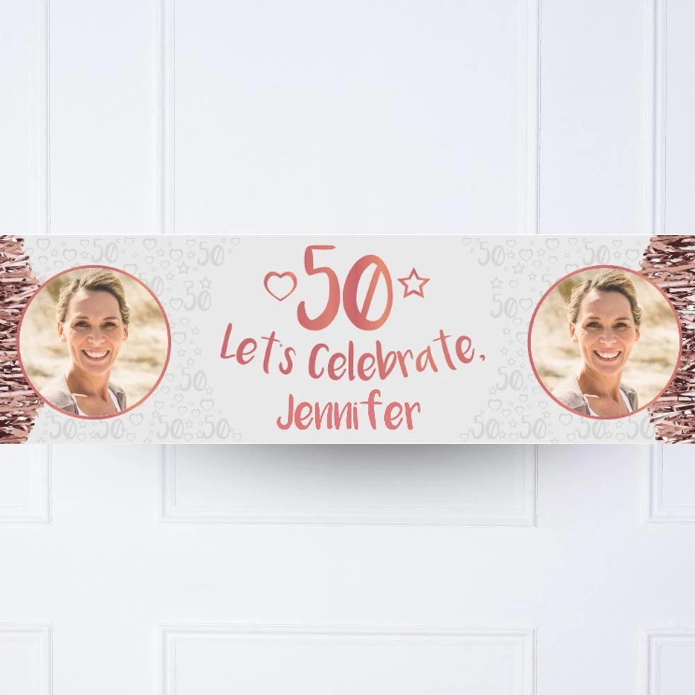 Celebrate the Half-Century Milestone with This Super Stylish Rose Gold Personalised Party Banner!