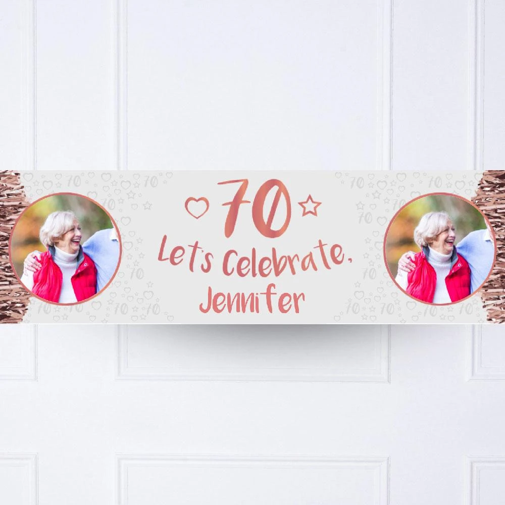 Rose Gold Is a Super Stylish Choice for a 70th Birthday Banner!