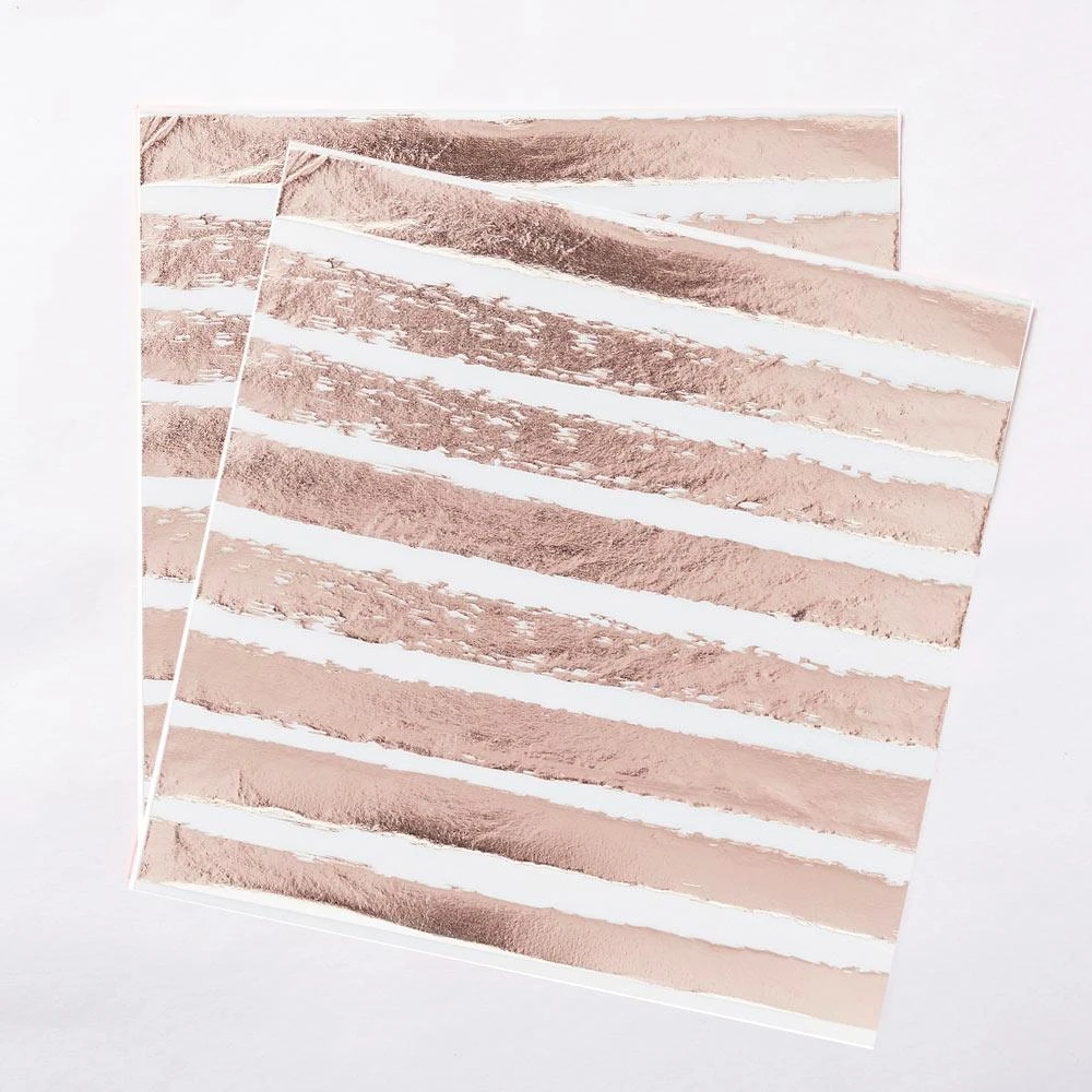 These Amazingly Shiny Rose Gold and White Striped Napkins Are a Stylish Addition to Any Party Table!