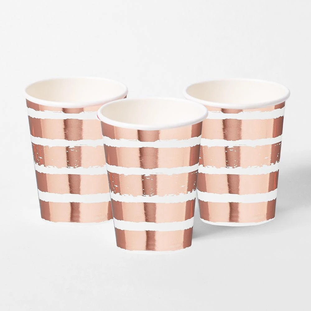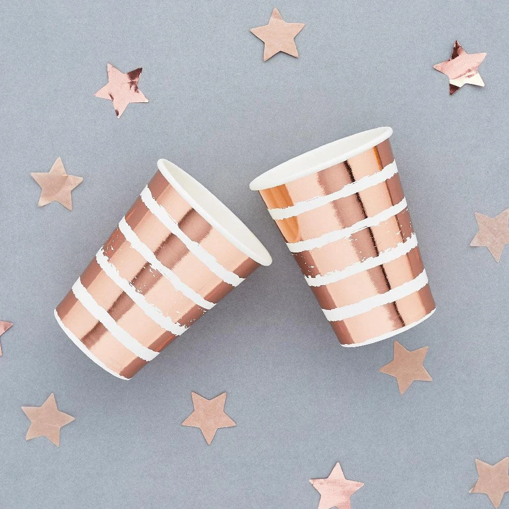This Pack of 10 Stripy Rose Gold and White Paper Cups Comes With a Whole Cupful of Style!