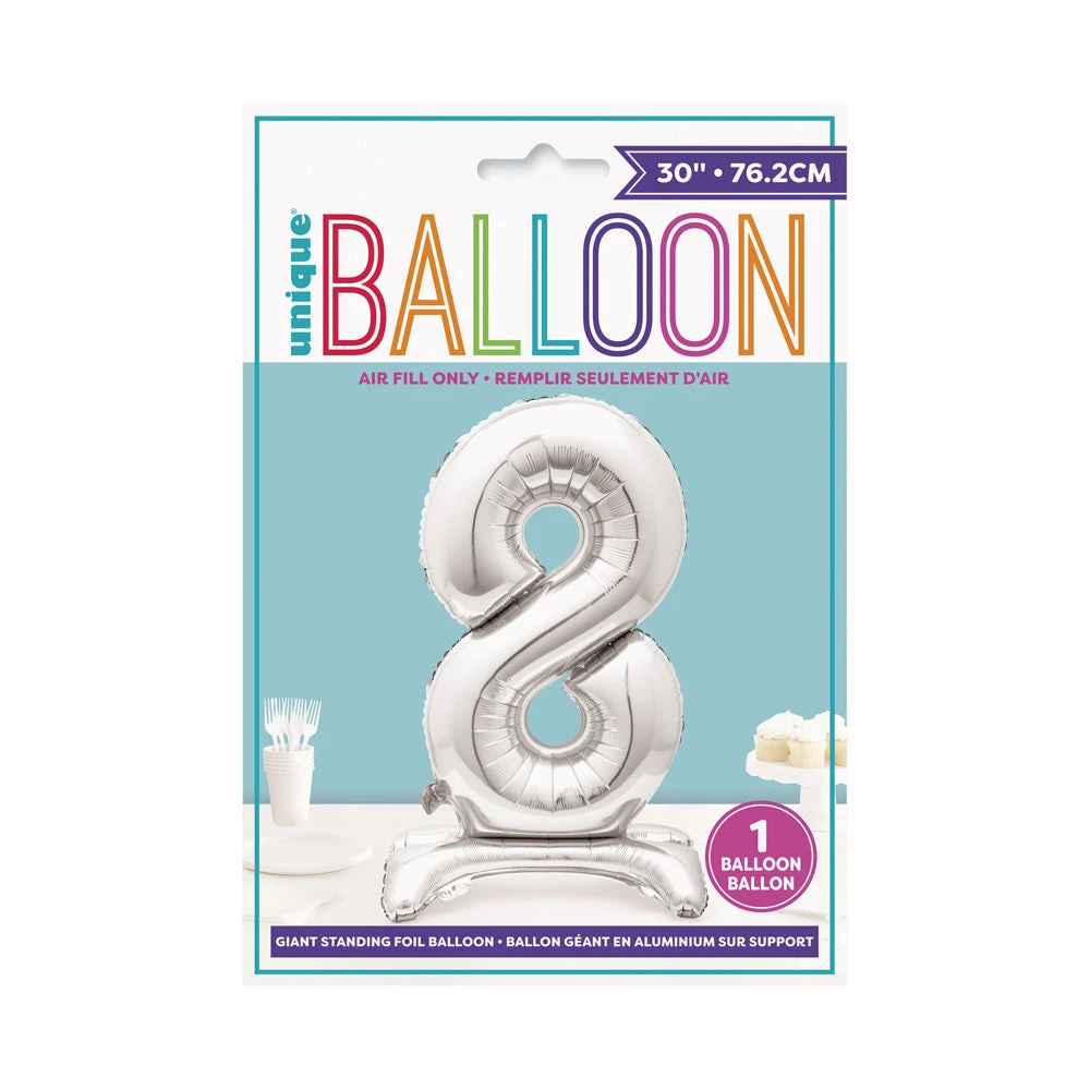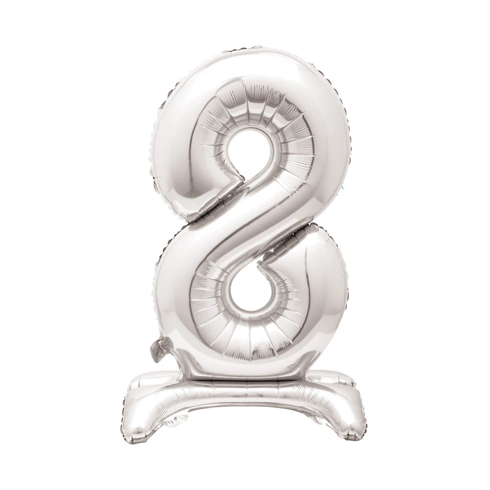 Create a super stylish table setting for a special occasion using this shiny silver 30″ foil balloon in the shape of the number 8. It would look great at a birthday party, milestone occasion, or anniversary and can be paired with any number your require for your celebration. It will stand tall on any party table or flat surface and guests are sure to admire it!Â