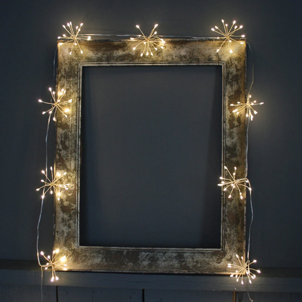 Hang these battery operated lights along your garden fence, around a mirror, use them to decorate a plain wall or arrange them anywhere that could benefit from the beautiful warm tones. Featuring 150 white LEDs, a stylish starburst effect, and a handy built-in timer, these chain lights are ideal for decorating your home or garden for a party or everyday use. With a total length of 2.3m and 1.8m of illumination, they are sure to brighten up dark areas!