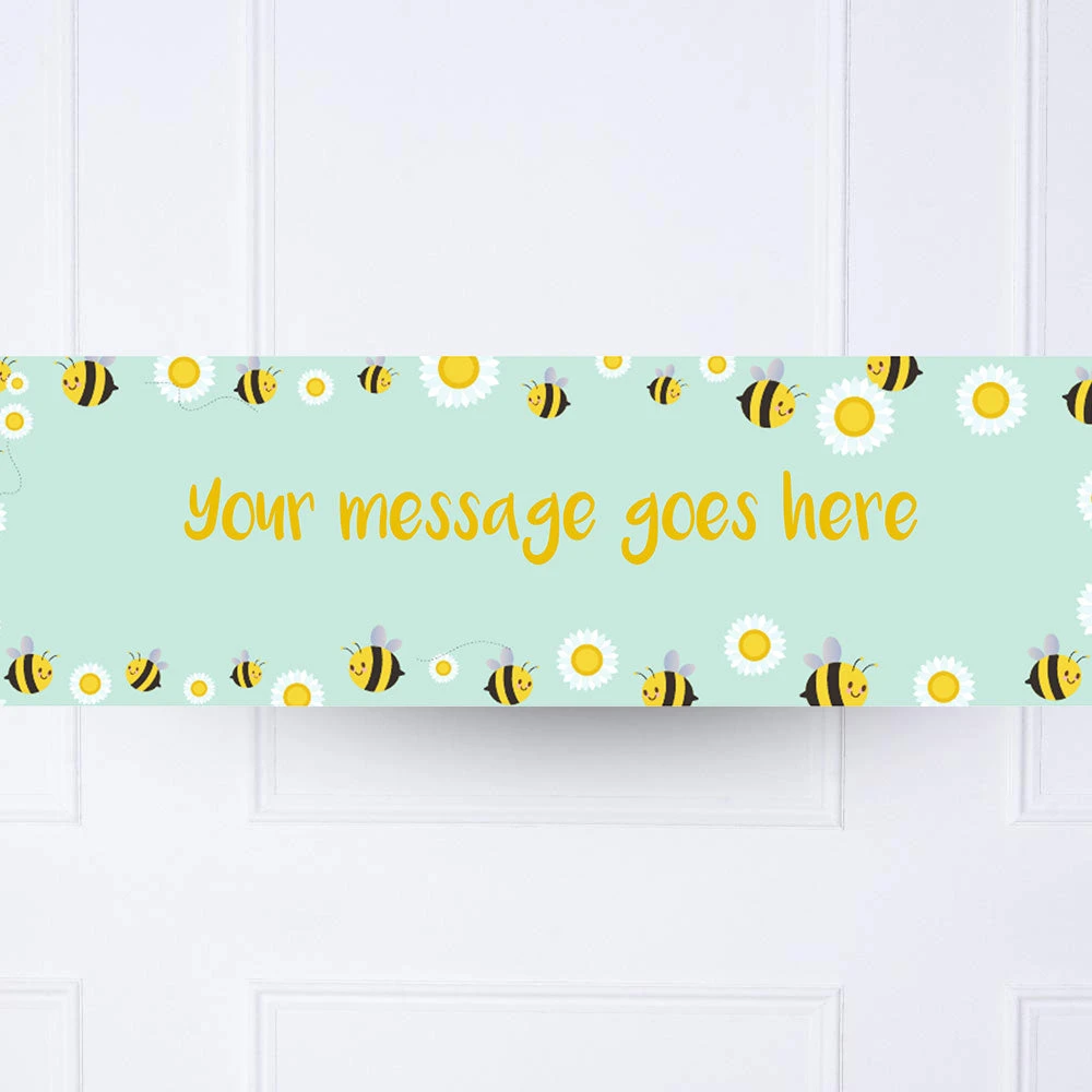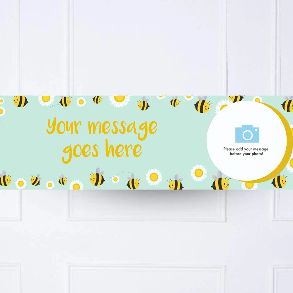Great for birthdays, baby showers and other special occasions. This beautiful personalised banner comes with a bee and daisy print design. Customise with a message of your choice using our easy online editor.