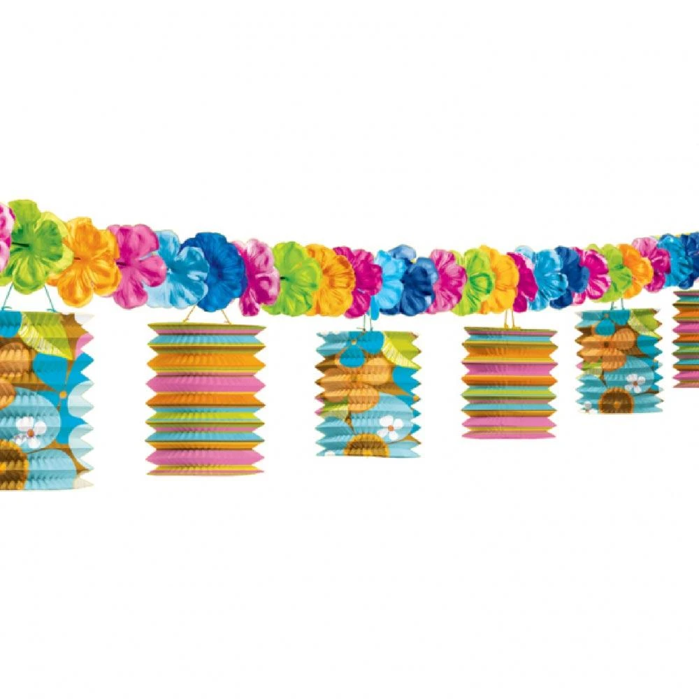 These bright and beautiful Hawaiian string garland offers a tropical splash of colour that will make you want to hula the night away! Perfect for decorating an outdoor evening party venue, or bringing the fiesta fun inside. With blue, pink, green and orange colours, this tropical tiki lantern with flower garland is bound to lighten up any birthday or summer party.
