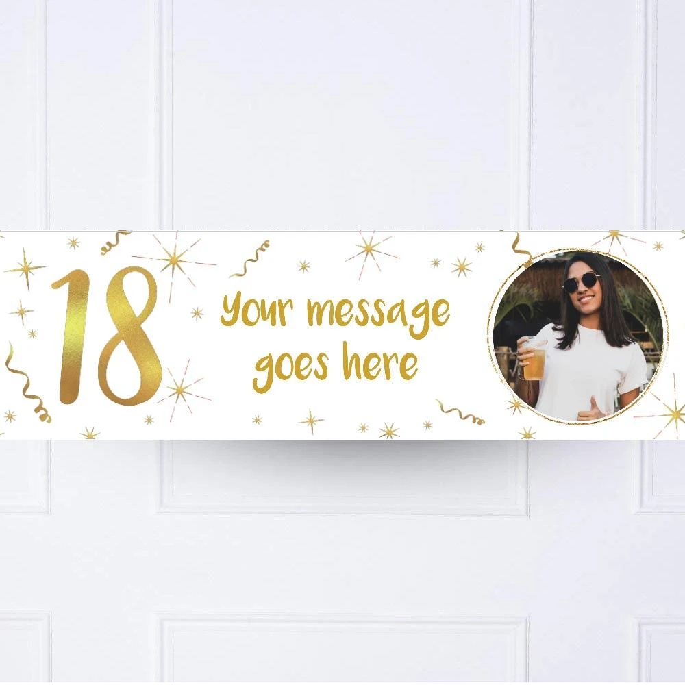 Celebrate the 18th Birthday Milestone With This Gorgeous Gold and White Banner!