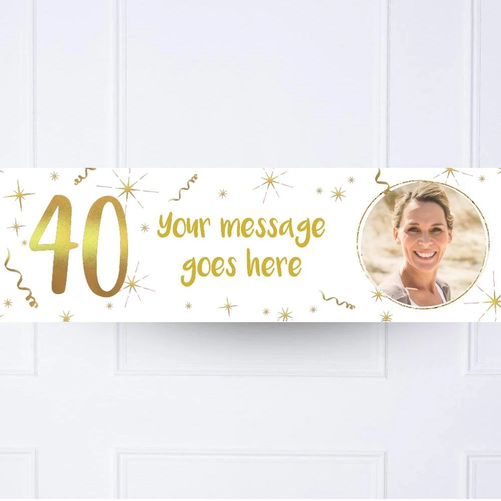 It’s Their 40th Birthday Milestone! Decorate the Day With a White and Gold 40th Personalised Banner!